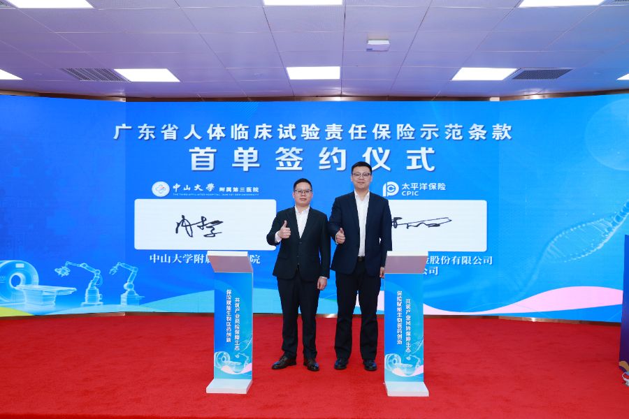 2月6日,广东省生物医药保险创新服务发布会暨风险保障研讨会议在广州召开,会上中国太保产险广东分公司与中山大学附属第三医院代表完成了人体临床试验责任保险签约,标志着首单广东省人体临床试验责任保险示范条款保单落地。