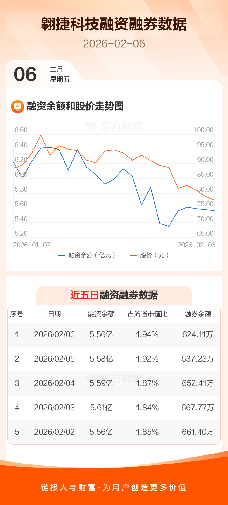 交易所最新数据显示,翱捷科技于2026年2月6日获融资买入3025.14万元,融资偿还3302.63万元,当日融资净偿还277.5万元。目前,该股融资余额5.56亿,占流通市值比例为1.94%。