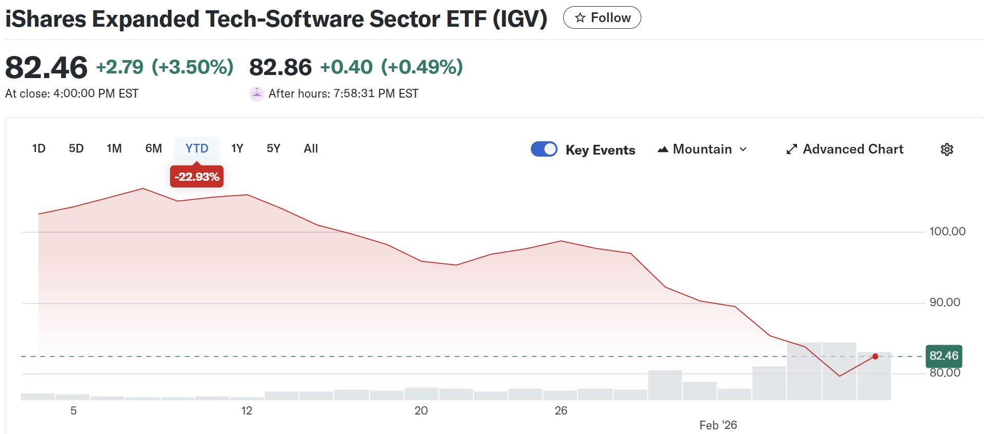 另外,追踪114家最大软件公司的iShares扩展技术软件ETF(IGV)年内跌幅近23%,较去年9月的高点下跌了30%。