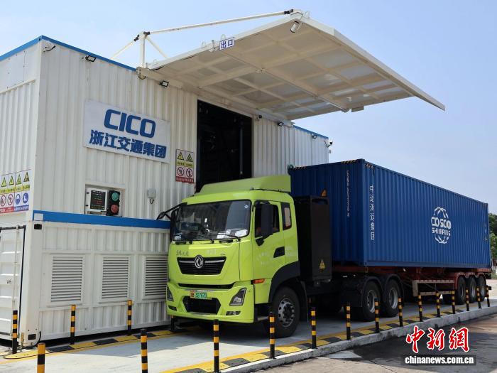 纯电动集装箱卡车正在换电。浙江交通集团供图