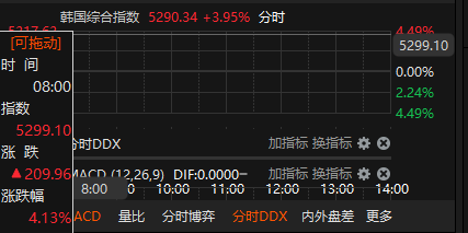 上证报中国证券网讯 2月9日,日韩股市开盘齐涨。日经225指数涨1.62%,报55130.63点;韩国综合指数涨4.13%,报5299.10点。