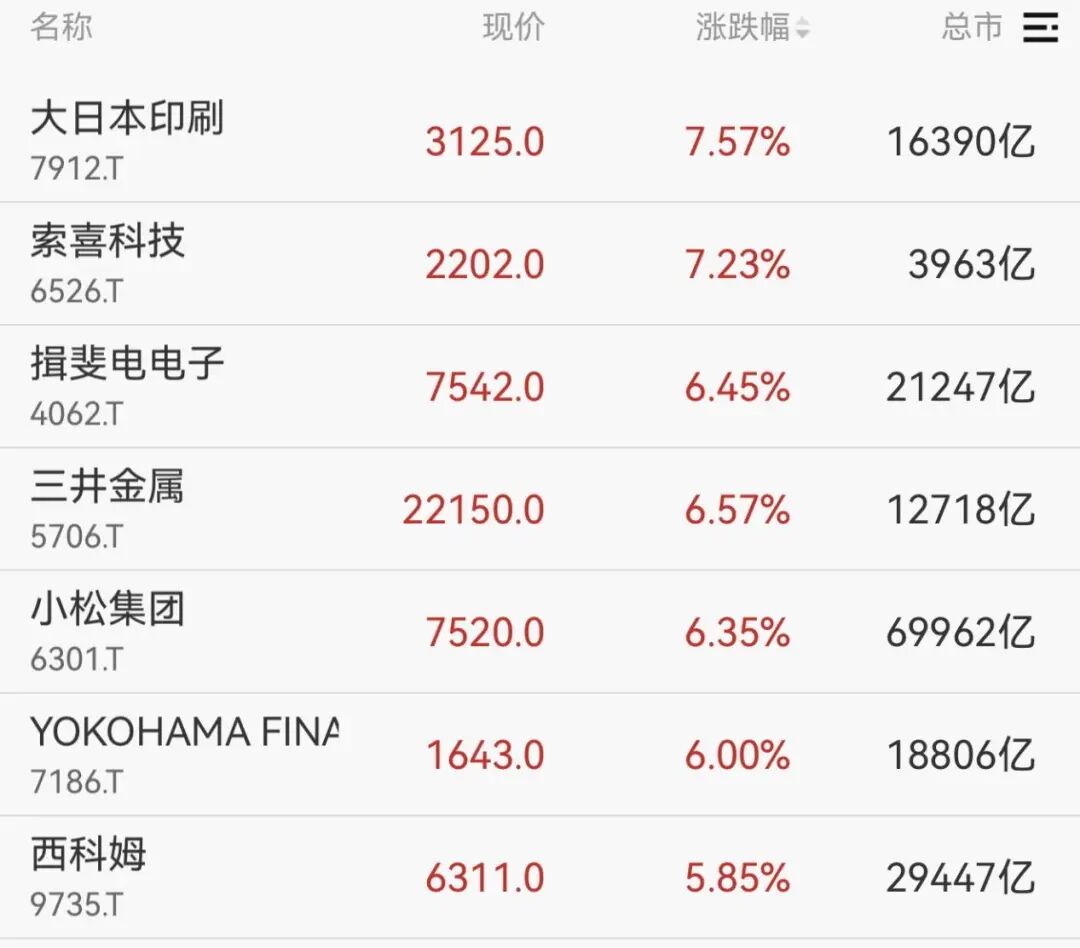 个股方面,索喜科技、三井金属、西科姆等涨幅居前。软银集团股价涨幅最高达8.5%,创1月28日以来最大涨幅。