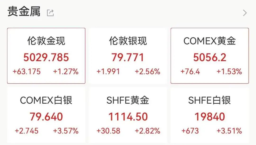 在经历上周的巨震后,北京时间2月9日,现货黄金盘初持续走高,重新站上5000美元/盎司;现货白银盘中突破80美元/盎司。截至北京时间8时,现货黄金报5029.785美元/盎司,日内涨超1%;现货白银报79.771美元/盎司,日内涨超2.5%。