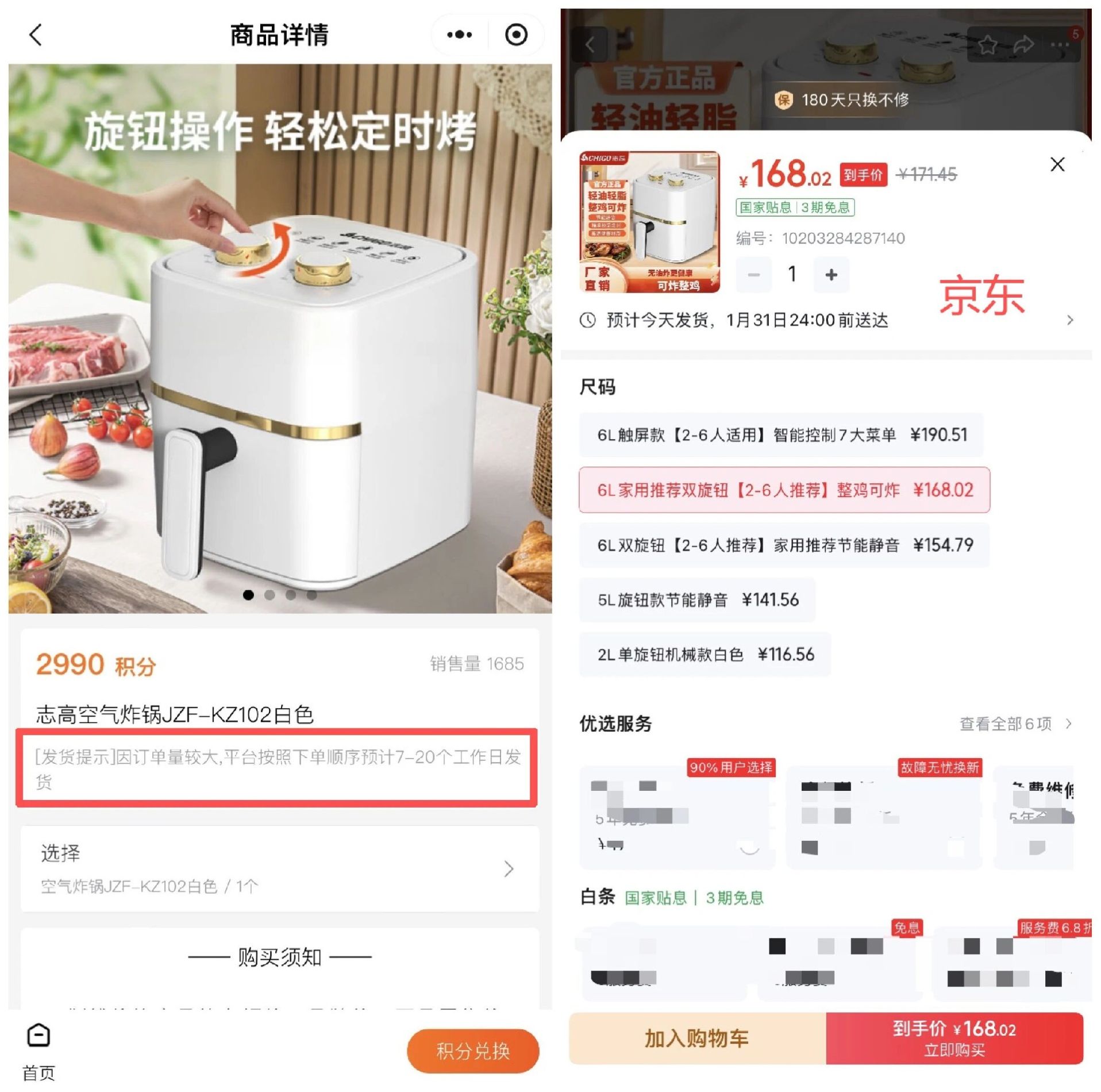 实际比对显示,平台商品兑换价格普遍高于市场同类产品。一款志高空气炸锅在淘乐融平台需要2990积分(折合299元),但在其他平台售价约168元,溢价近78%。一款主流电商售价约33.9元的吹风机,需要590积分兑换,折合59元,溢价超过70%。九阳绞肉机对应160%左右溢价,HYUNDAI养生壶溢价幅度达213%左右。