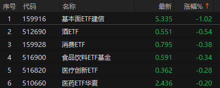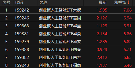 ETF午盘:创业板人工智能ETF大成涨7.08% 基本面ETF建信跌1.02%