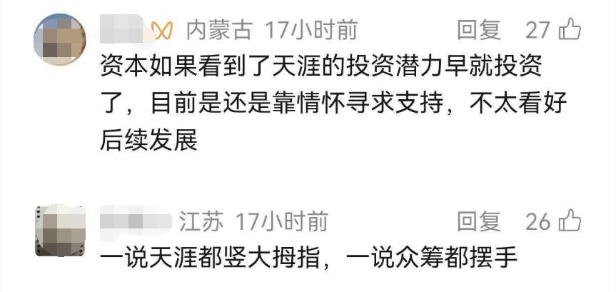据此前报道, 2023年4月1日,天涯社区以“进行技术升级和数据重构”开始关停。同年5月27日,天涯社区宣布因资金流动困难而暂停访问服务,引发舆论哗然,该则公告还指出了公司种种困境,包括资金流动性困难、纠纷诉讼至今未解、银行断贷、员工离职等。公告发布次日,一场由天涯前员工和资深网友自发组织的“七天七夜重启天涯”直播筹资活动轰轰烈烈展开,最终以直播事故频出、300万目标筹资额仅完成14.99万而黯然落幕。