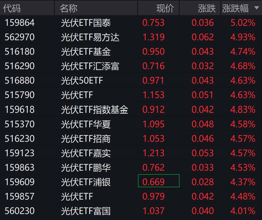 受盘面影响,光伏相关ETF涨超4%。