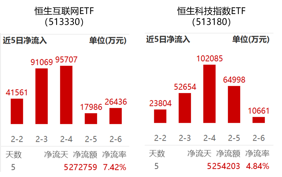 港股方面,恒生科技指数ETF(513180.SH)、恒生互联网ETF(513330.SH)、港股通科技ETF基金(159101.SZ)获得资金连续第五日大额净申购。