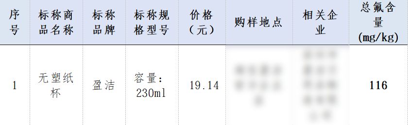 此外,标称为盈洁牌无塑纸杯检出总氟含量超过相关标准限量要求。相关专家表示,氟超标是由于产品中加入了氟化物,这个物质在环境中无法降解,它如果流入到土壤、水里,会不断积聚,最终可能循环到人体中。
