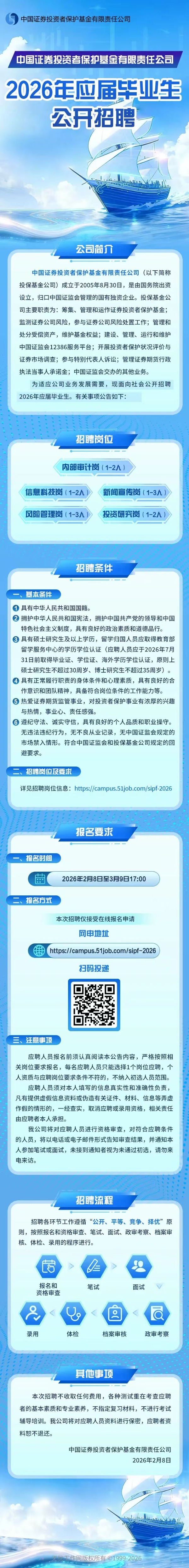 中国证券投资者保护基金有限责任公司2026年应届毕业生公开招聘公告