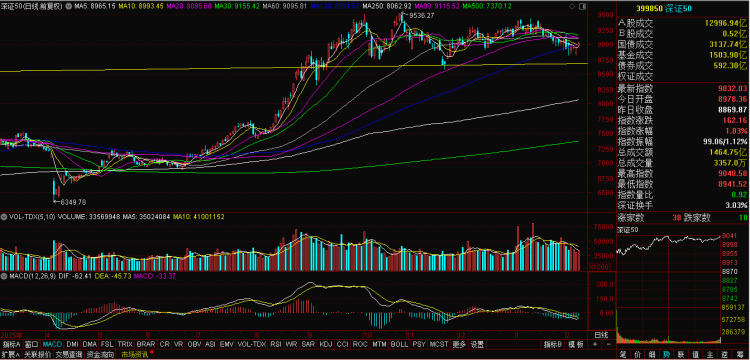 2月9日(周一),A股高开高走,截至终盘:上证指数收报4123.09点,上涨57.51点,涨幅1.41%;深证综指收报2700.22点,上涨50.65点,涨幅1.91%;科创综指上涨2.47%;中小综指上涨1.61%;创业板综指上涨2.67%。A股成交金额合计22702.04亿元,比上周五放大5%。