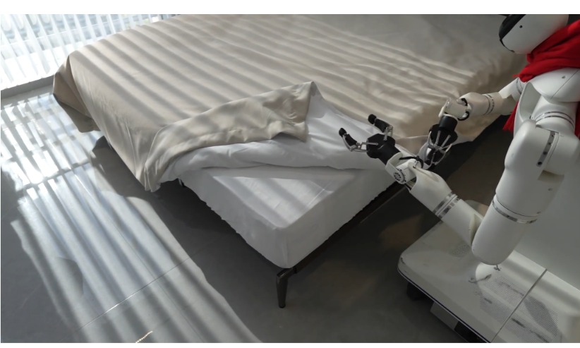 《华尔街日报》网站报道截图:中国生产的人形机器人演示整理床单