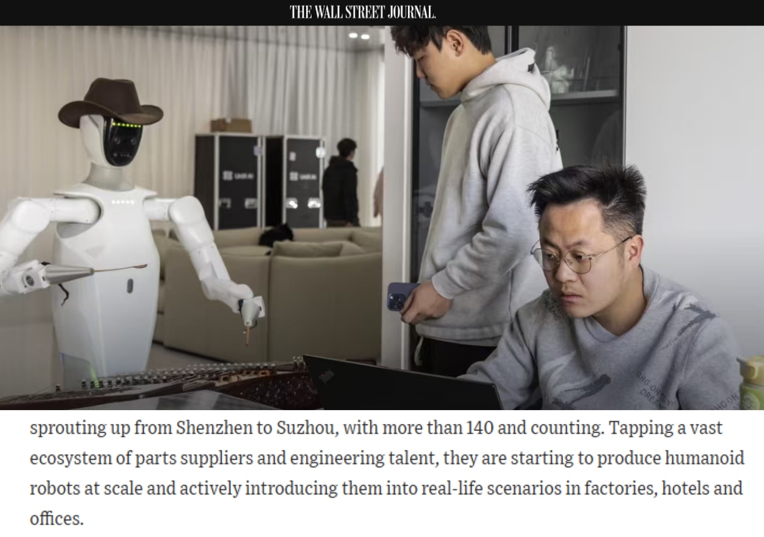 文章最后援引一家科技公司负责人的话说,“政府政策是打开市场的动力,而具身人工智能初创企业则是推动市场发展的引擎。中国深厚的技术人才储备与政府的有力支持,使其成为创业的理想之地。”