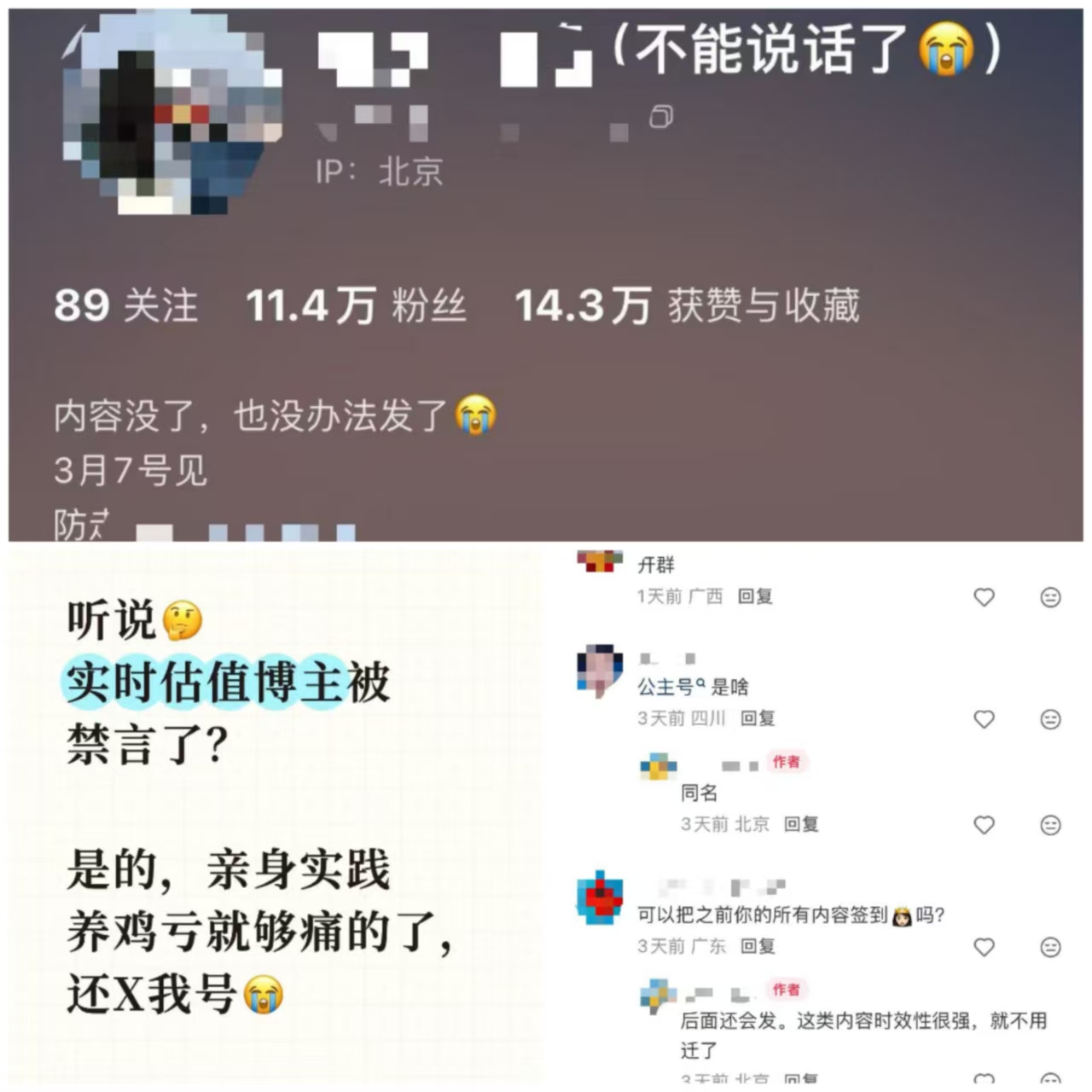 应监管要求,多平台于月初下架“基金实时估值”相关功能,随后小红书平台多个笔记显示,大量账号分享了自制的实时估值小程序或软件。不过最近几日小红书禁言了多个分享基金实时估值工具的博主。记者注意到,上周发布的关于基金实时估值小程序或软件的笔记,有不少已被删除,部分分享链接已不可用。有博主开小号称大号被禁言一个月,并在笔记评论区“指路”同名公众号。