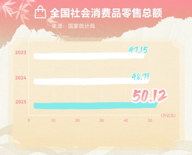 当然,新年的消费趋势不会只是以上这些。去年,全国社零总额已突破50万亿元,内需对经济增长的贡献率超67%,消费贡献率达52%。中央经济工作会议明确2026年重点任务之首,就是“坚持内需主导,建设强大国内市场”。随着中国经济结构优化,内生动力增强,今年消费对GDP贡献率还将提升,会出现更多新场景、新趋势。