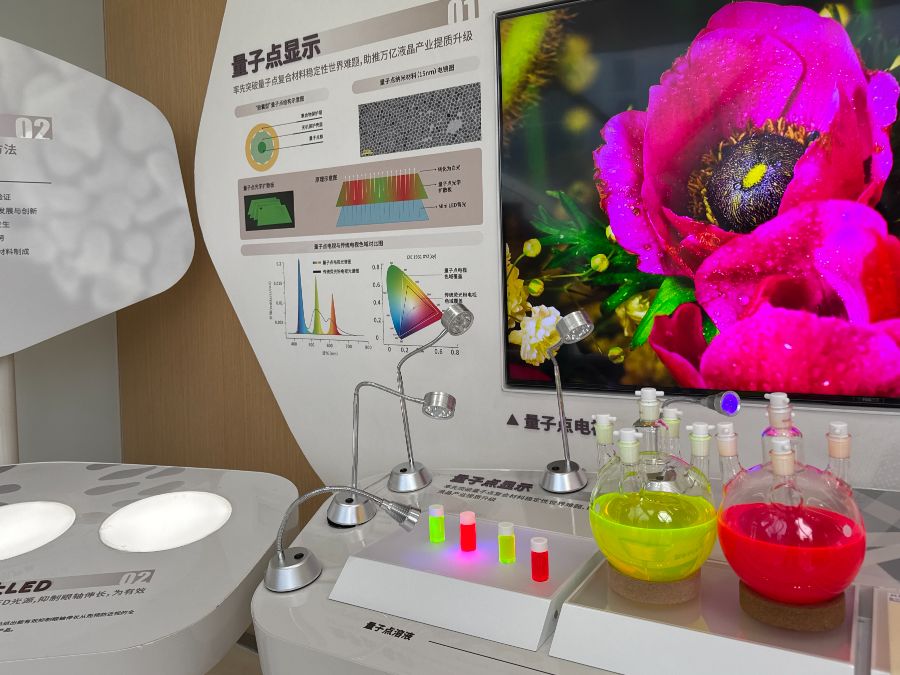 “该产品具有高稳定性、高亮度、高色域的特点,兼具高性价比的优势,为蓝光发光芯片Mini-LED提供高质量色转换,提升显示色域,降低显示能耗。”朱小波介绍,产品现已供应海信、创维、TCL等电视龙头企业,为平板显示产业的转型与升级提供了关键技术支撑。