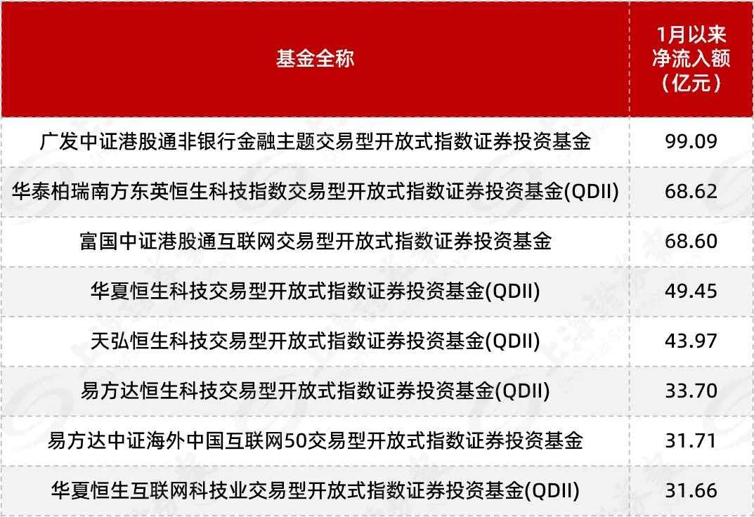 随着资金的持续涌入,“巨无霸”式港股主题ETF涌现。截至2月6日,富国港股通互联网ETF最新份额为1007.66亿份,创上市以来新高,这也是首只份额突破千亿份的港股主题ETF。
