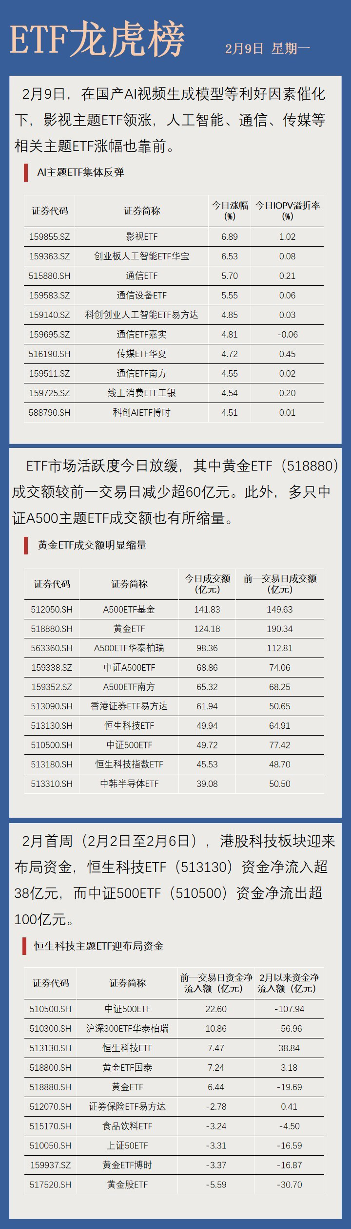 【ETF龙虎榜】影视主题ETF领涨 AI板块集体反弹!