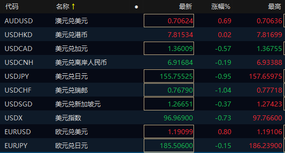 上证报中国证券网讯北京时间2月9日晚间,美元指数持续走低。22时10分,美元指数下跌0.73%,美元兑瑞郎汇率跌超1%。