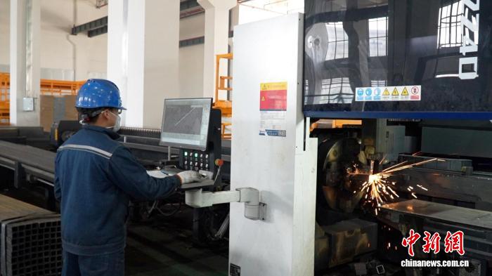 车间里,智能化自动激光切割机精准作业,仅用20分钟就完成了一块10毫米厚、2平方米钢材的钻孔工序,加工效率是传统人工操作的10倍。