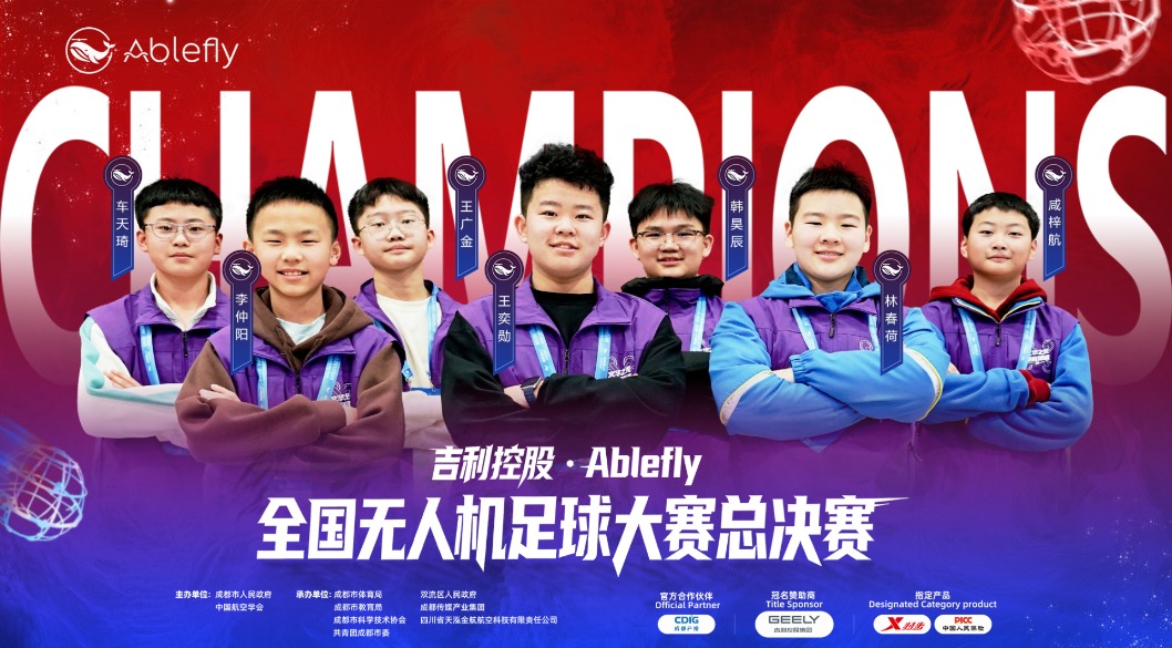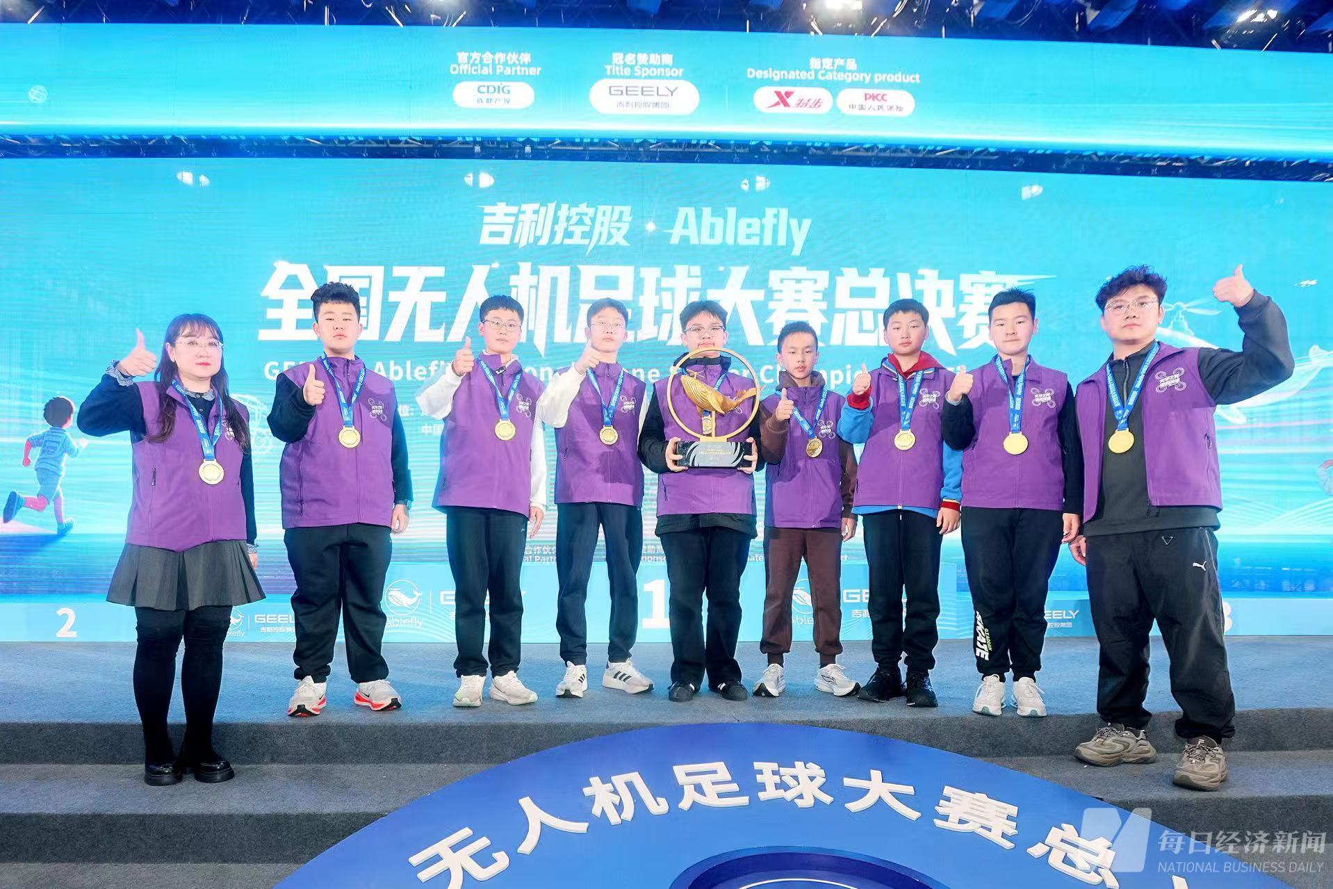 2月9日晚的成都空港国际会议中心,随着最后一声哨响落下,吉利控股·Ablefly全国无人机足球大赛总决赛落下帷幕——华东大区代表队潍坊文华学校的“菜就多练”队在欢呼声中捧起了冠军奖杯。