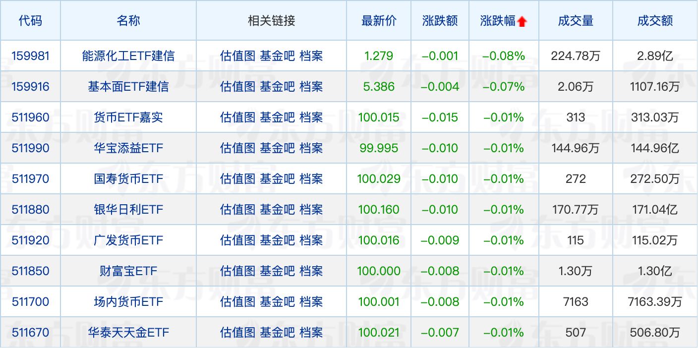 下跌方面,能源化工ETF建信跌幅居前。
