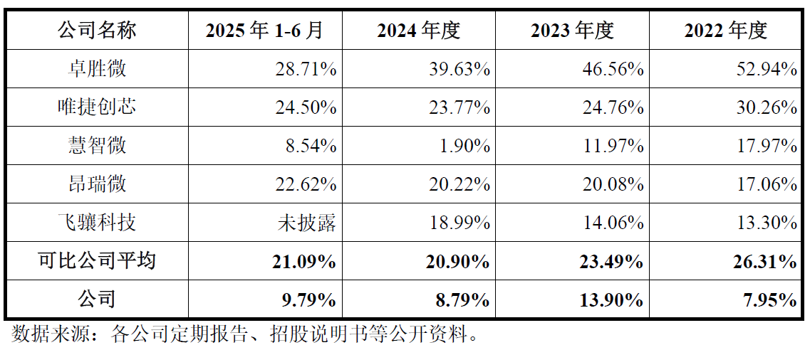 毛利率持续低迷是锐石创芯最突出的财务痛点。报告期内,公司主营业务毛利率分别为7.95%、13.90%、8.79%和9.79%,而同期国内同行业可比公司平均毛利率分别达26.31%、23.49%、20.90%和21.09%,公司毛利率在大部分年份不足同业均值的一半,差距显著。
