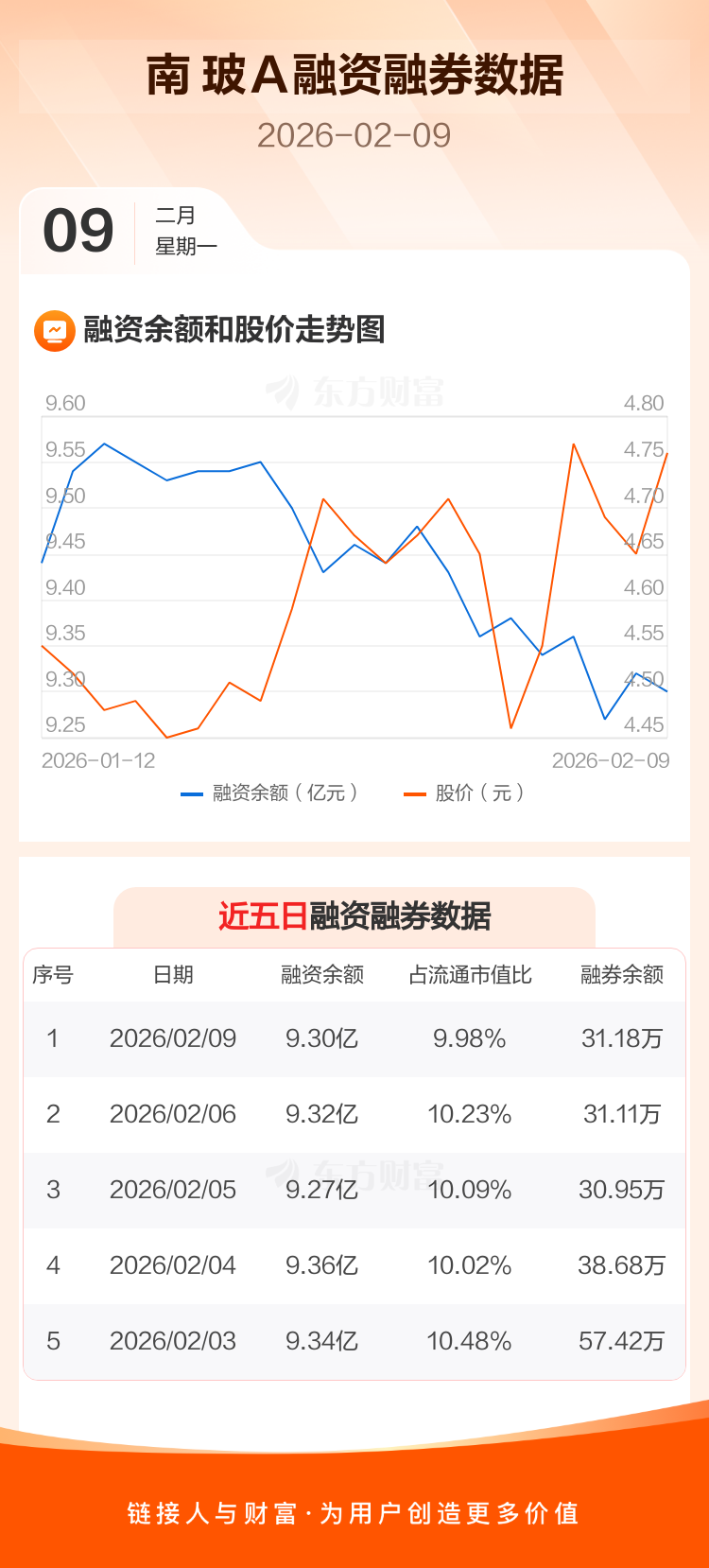 交易所最新数据显示,南 玻A于2026年2月9日获融资买入2505.95万元,融资偿还2685.64万元,当日融资净偿还179.68万元。目前,该股融资余额9.30亿,占流通市值比例为9.98%。