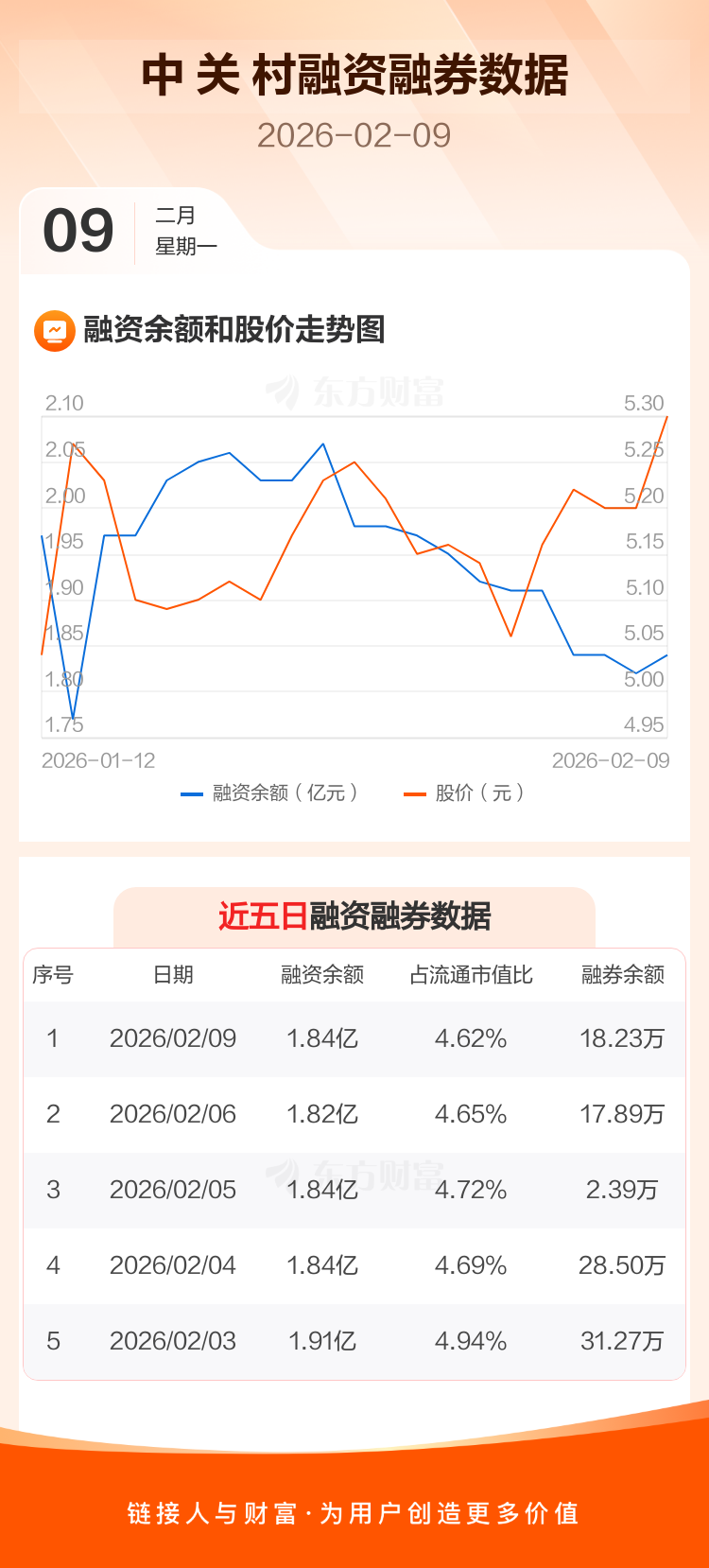 交易所最新数据显示,中 关 村于2026年2月9日获融资买入945.89万元,融资偿还735.75万元,当日融资净买入210.14万元。目前,该股融资余额1.84亿,占流通市值比例为4.62%。