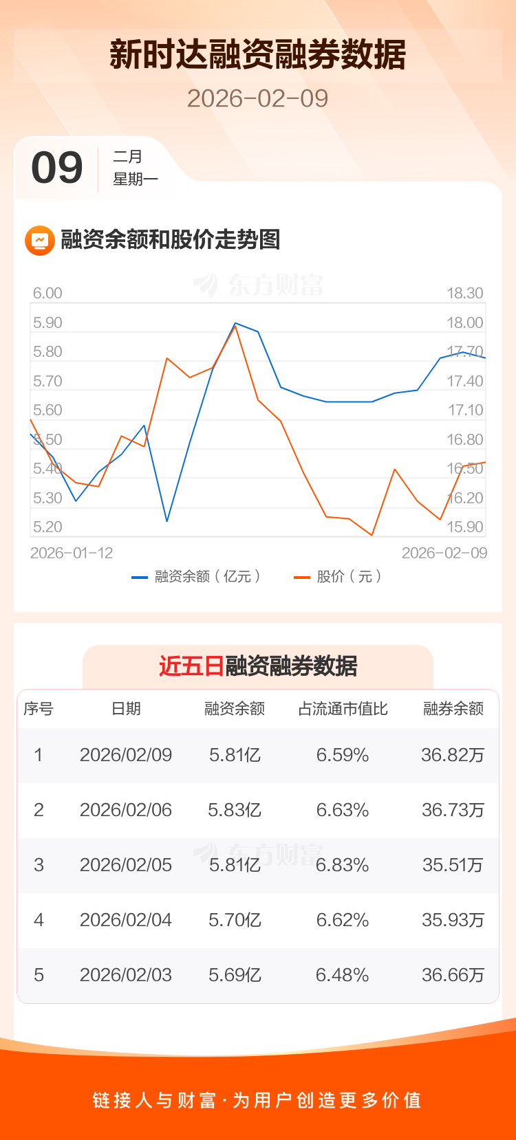 交易所最新数据显示,新时达于2026年2月9日获融资买入2811.36万元,融资偿还3045.56万元,当日融资净偿还234.19万元。目前,该股融资余额5.81亿,占流通市值比例为6.59%。