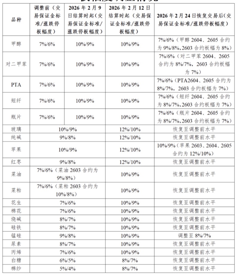 郑商所的调整中,也是多以3个百分点为上调基准,但部分品种从2月9日结算时起已有调整。