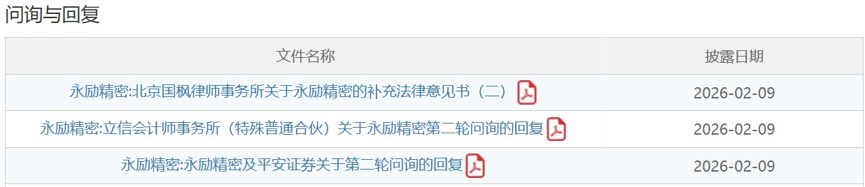 据北交所官网信息,2月9日,浙江永励精密制造股份有限公司(以下简称永励精密)回复了北交所第二轮审核问询函,后者关注的问题包括业绩增长可持续性、收入确认准确性、募投项目必要性与合理性等。