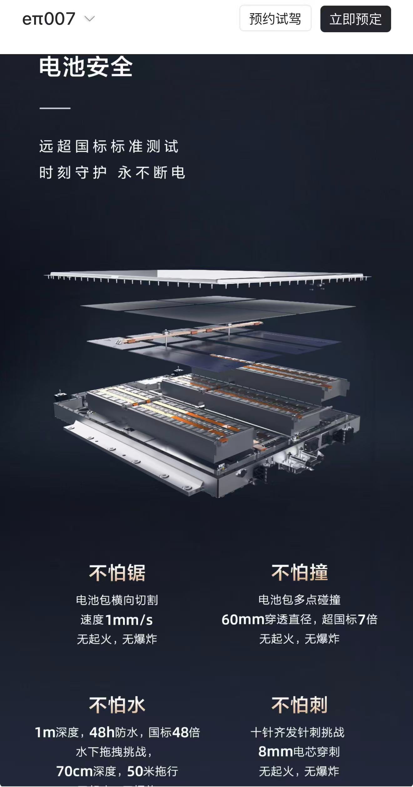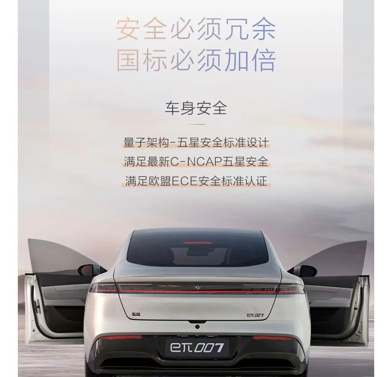 《财中社》梳理发现,奕派007上市时,2024年款车型主打电池安全,在官方微信介绍中,奕派007使用马赫E电池“不怕戳”,通过了10mm电芯穿刺,是行业标准的1.4倍;以及不怕挤压,300KN挤压是国标要求的3倍。车身安全采用量子架构-五星安全标准设计,达到“安全必须冗余,国标必须加倍”。