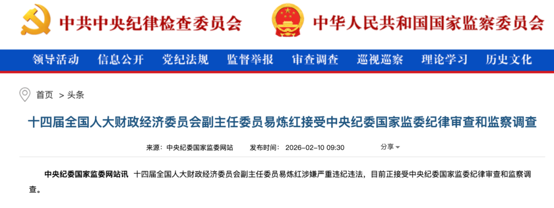 十四届全国人大财政经济委员会副主任委员易炼红涉嫌严重违纪违法,目前正接受中央纪委国家监委纪律审查和监察调查。