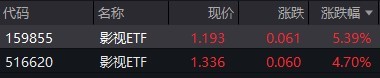 受盘面影响,影视ETF涨超4%。