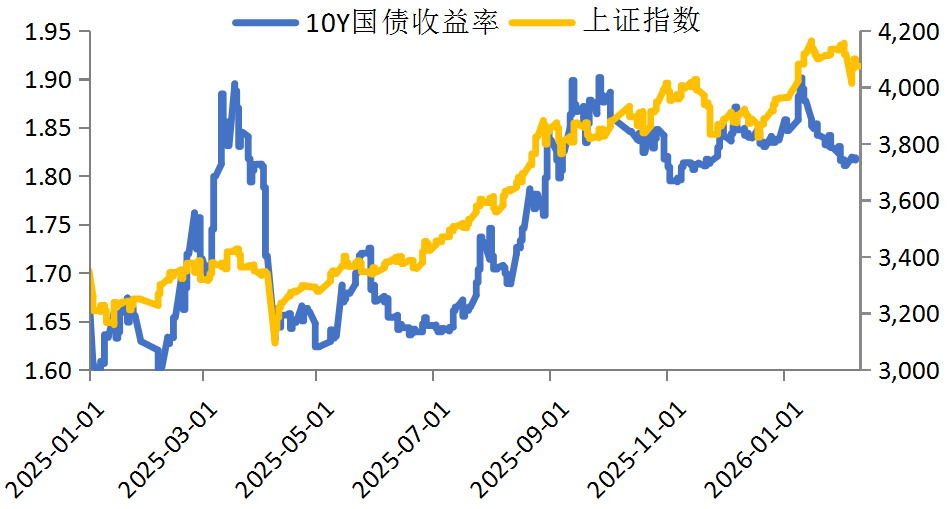 图为10年期国债收益率和上证指数走势