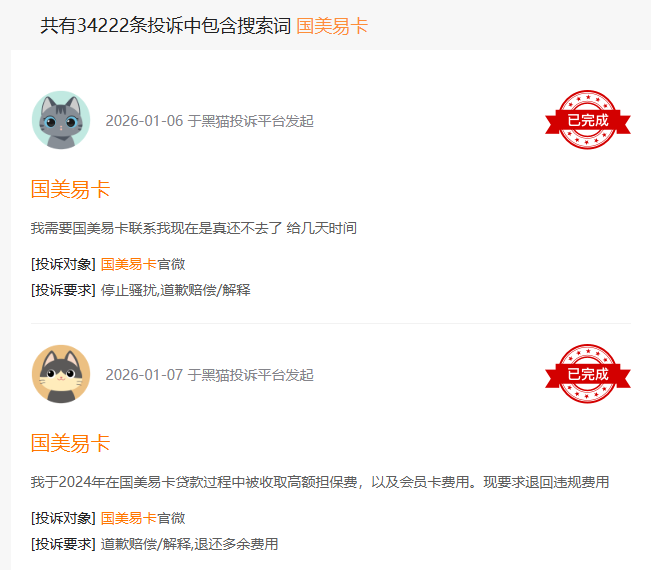 黑猫投诉量也能变相体现国美自营金融和金美信消金的业务体量差距。金美信消金的累计投诉量为近2200条,而国美易卡的投诉量超过34000条,投诉内容集中于收取高额担保费、会员费,综合利率过高和暴力催收等。