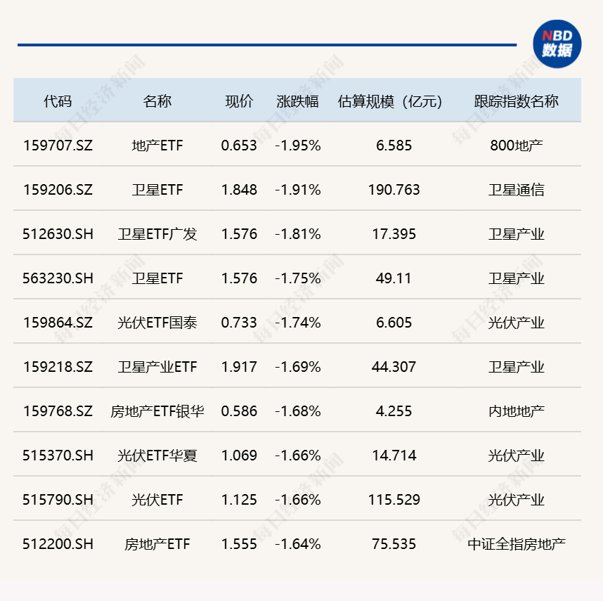 ETF今日收评 | 影视ETF涨停 地产、卫星相关ETF跌近2%