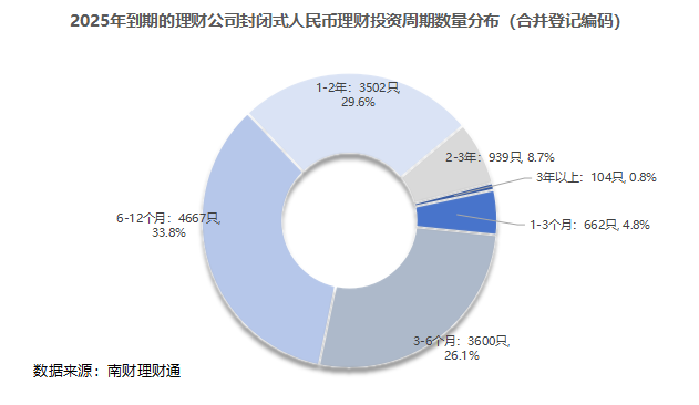 2025年,32家理财公司合计有13815款(按登记编码核算)封闭式公募产品到期,数量较2024年增长51.53%。