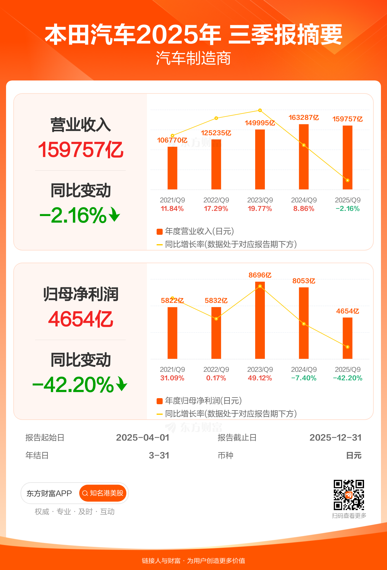 图解财报:本田汽车三季报盈利4654.37亿日元,同比减少42.20%