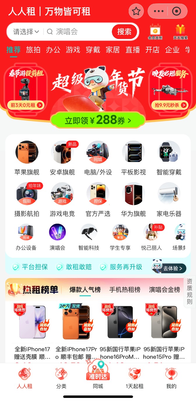 (人人租页面,产品品类丰富图源:人人租小程序)