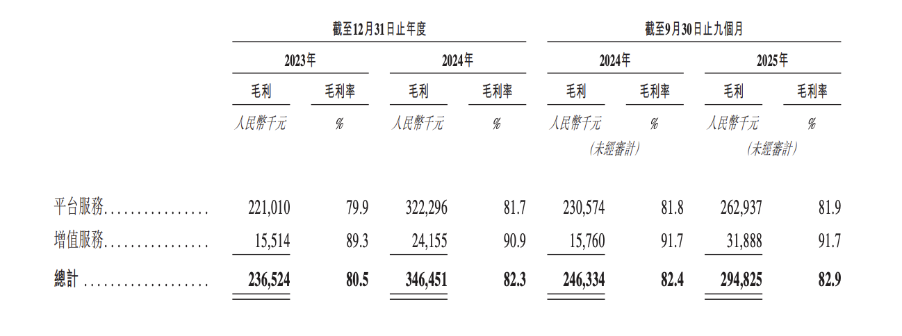 收入构成方面,在线交易佣金占据大头。在2023年、2024年以及2025年前九个月,平台服务收入分别为2.76亿元、3.94亿元以及3.21亿元,占比分别为94.1%、93.7%以及90.2%。其中,在线交易佣金分别为2.44亿元、3.50亿元以及2.81亿元,占比分别为83.2%、83.3%以及79.0%。