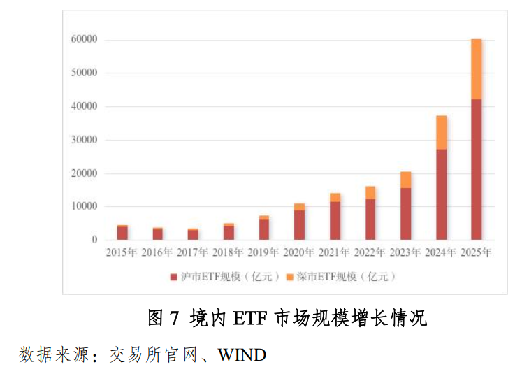 全球增长最快、最具活力的动能来自中国。截至2025年底,中国境内ETF产品数量达1381只,较2024年底增长35.7%;总规模达6.02万亿元,同比激增61.4%。
