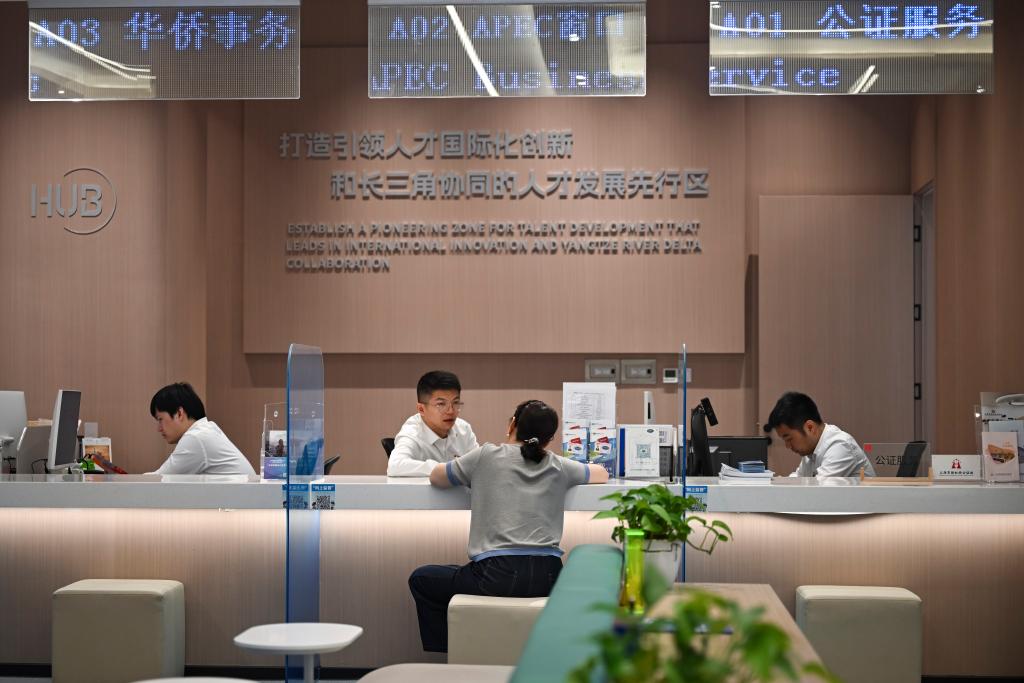 2025年9月10日,市民在上海虹桥国际人才服务中心办事大厅办理业务。新华社记者陈浩明摄