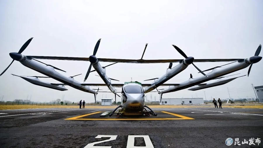 近日,峰飞航空科技自主研发的全球首款5吨级eVTOL V5000天际龙亮相,并在昆山民用无人机试飞运行基地完成转换飞行。