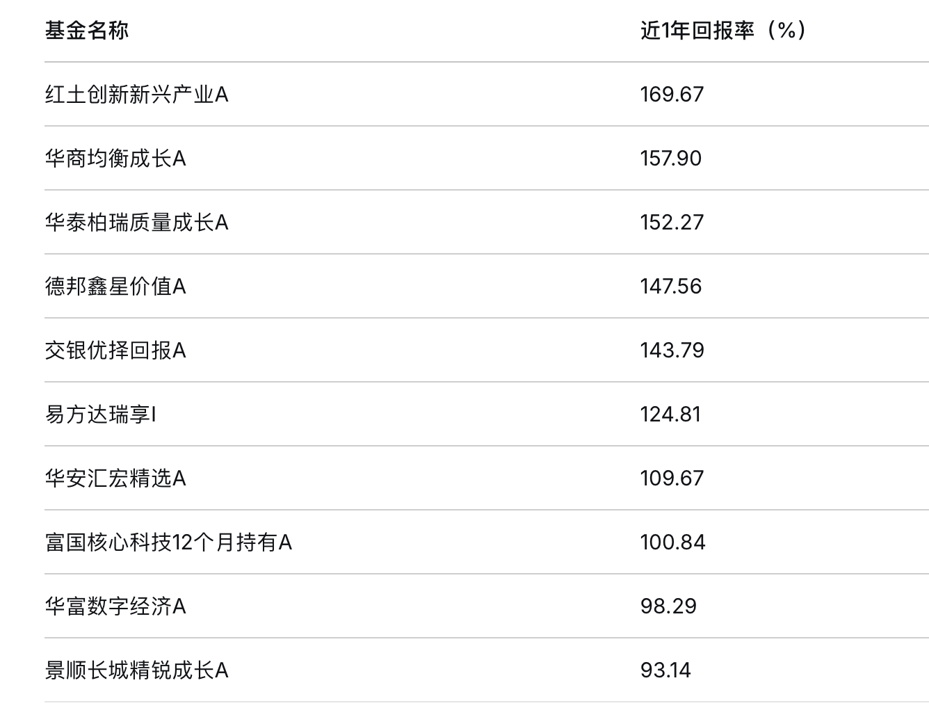 据Wind统计,截至2月9日,红土创新新兴产业A、华商均衡成长A、华泰柏瑞质量成长A、德邦鑫星价值A、交银优择回报A、易方达瑞享I、华安汇宏精选A、富国核心科技12个月持有A等多只净值创新高的基金,近一年的回报率达到100%以上。