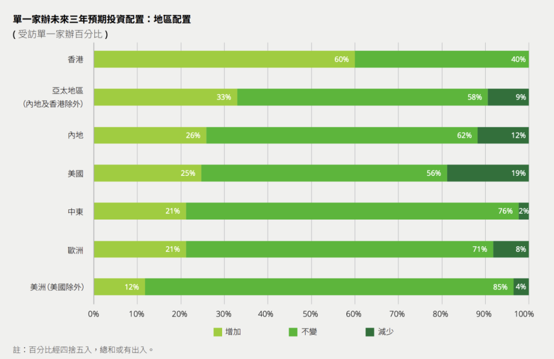 该研究还指出,资金动向上,家办投资策略出现明显调整。地域配置上,普遍降低美国市场配置,60%计划增加香港配置,中国香港成为唯一零减持地区,同时看好内地及亚太区机遇。行业配置上,科技/媒体、医疗保健成为未来增配重点,房地产则有22%计划减配。资产类别上,传统资产仍占主导,但另类资产快速崛起,私募股权最受欢迎,数字资产增配意愿仅次于公开市场股票,人工智能等新兴主题受年轻世代青睐。