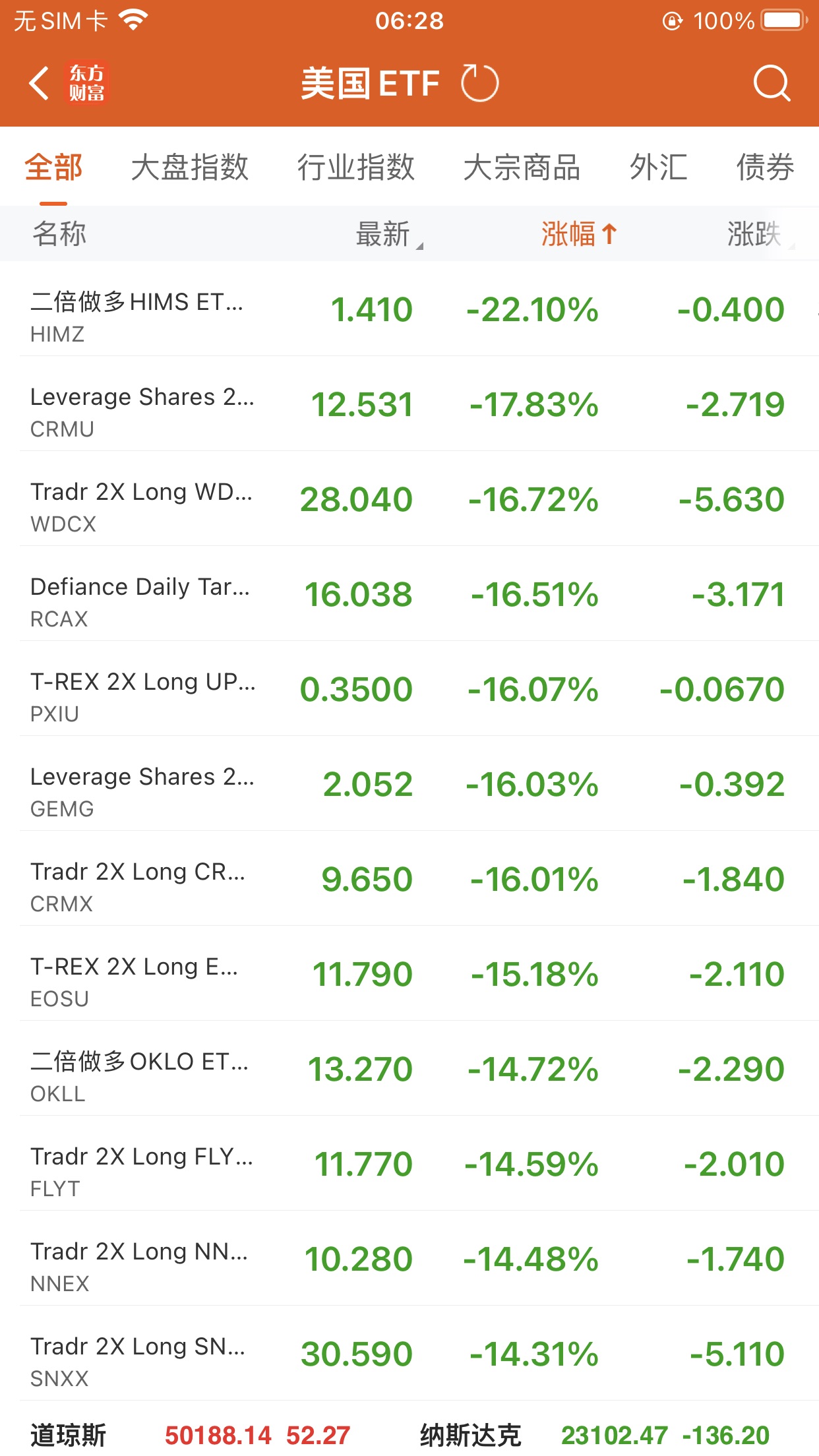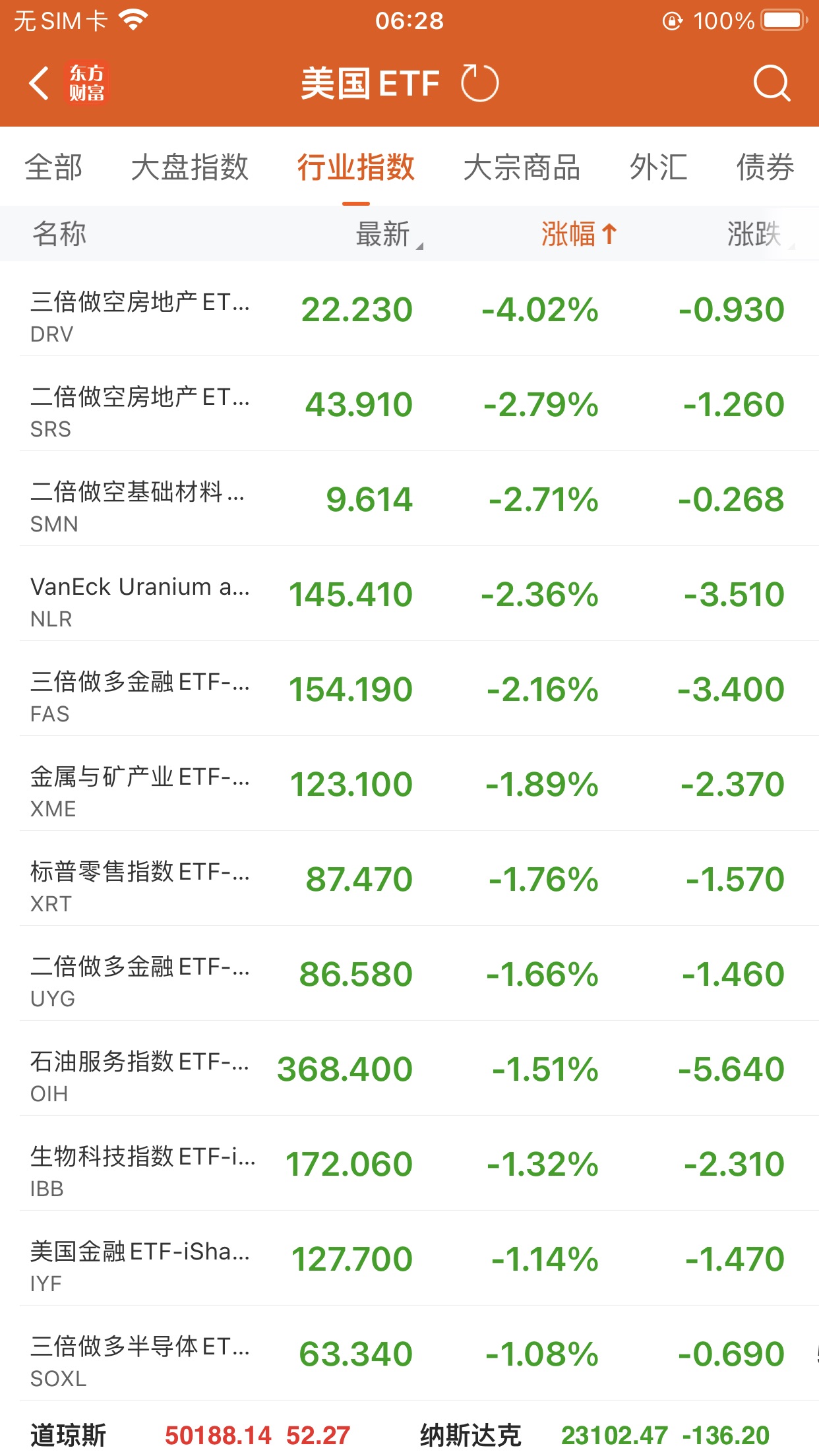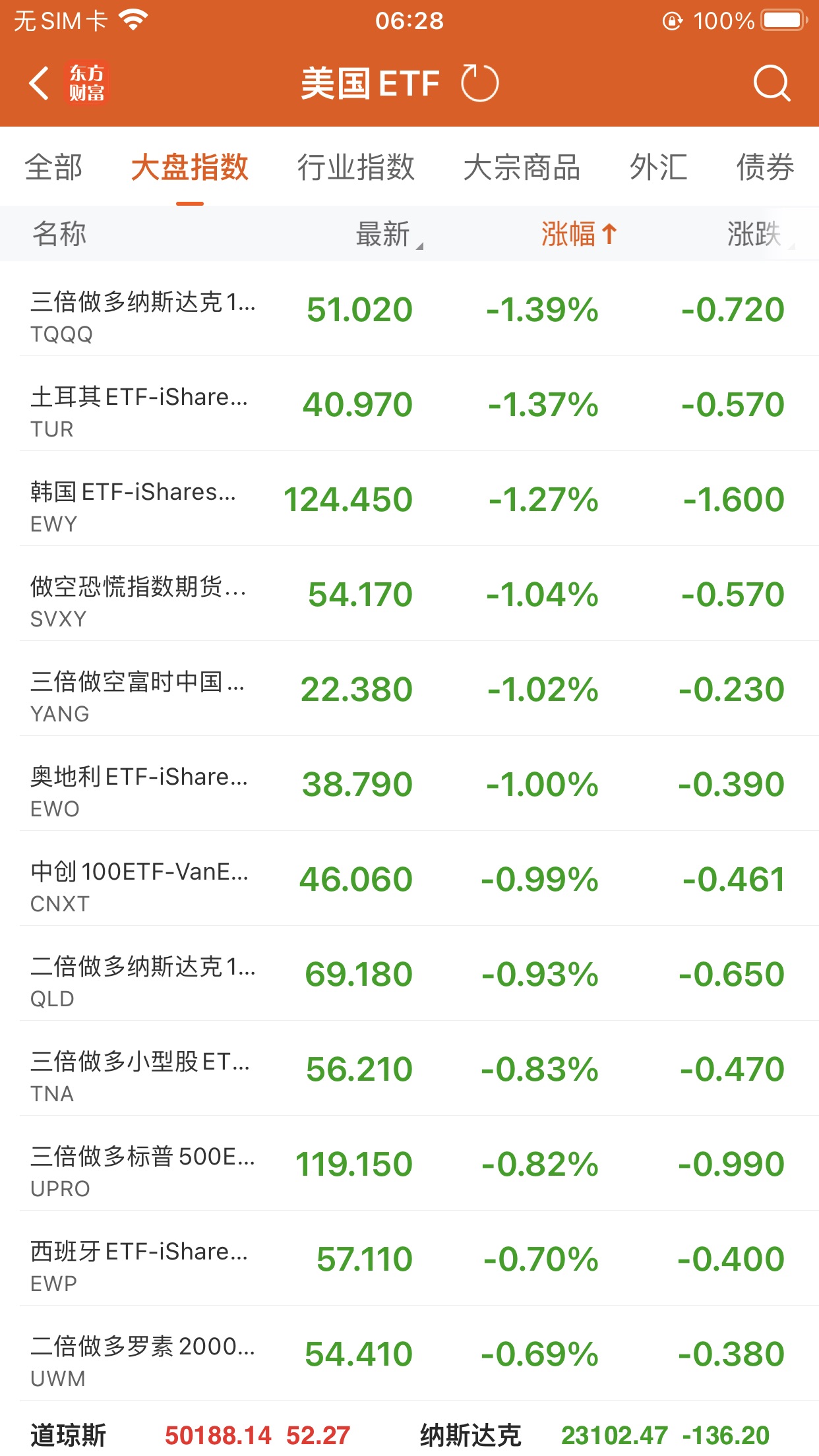 美股大型指数ETF跌幅榜Top5