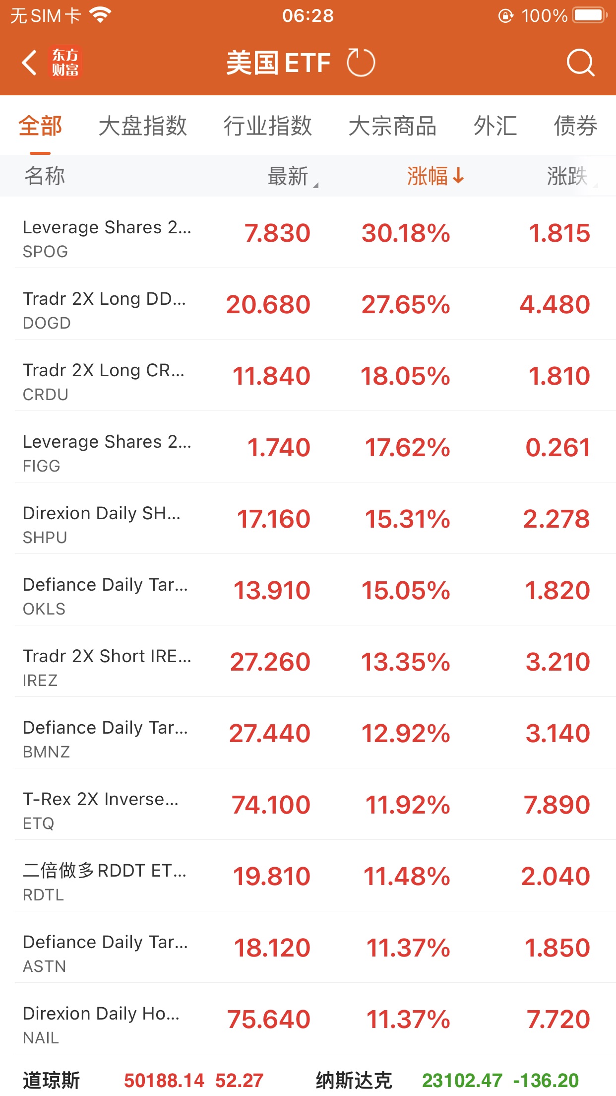 美股ETF升幅榜Top5