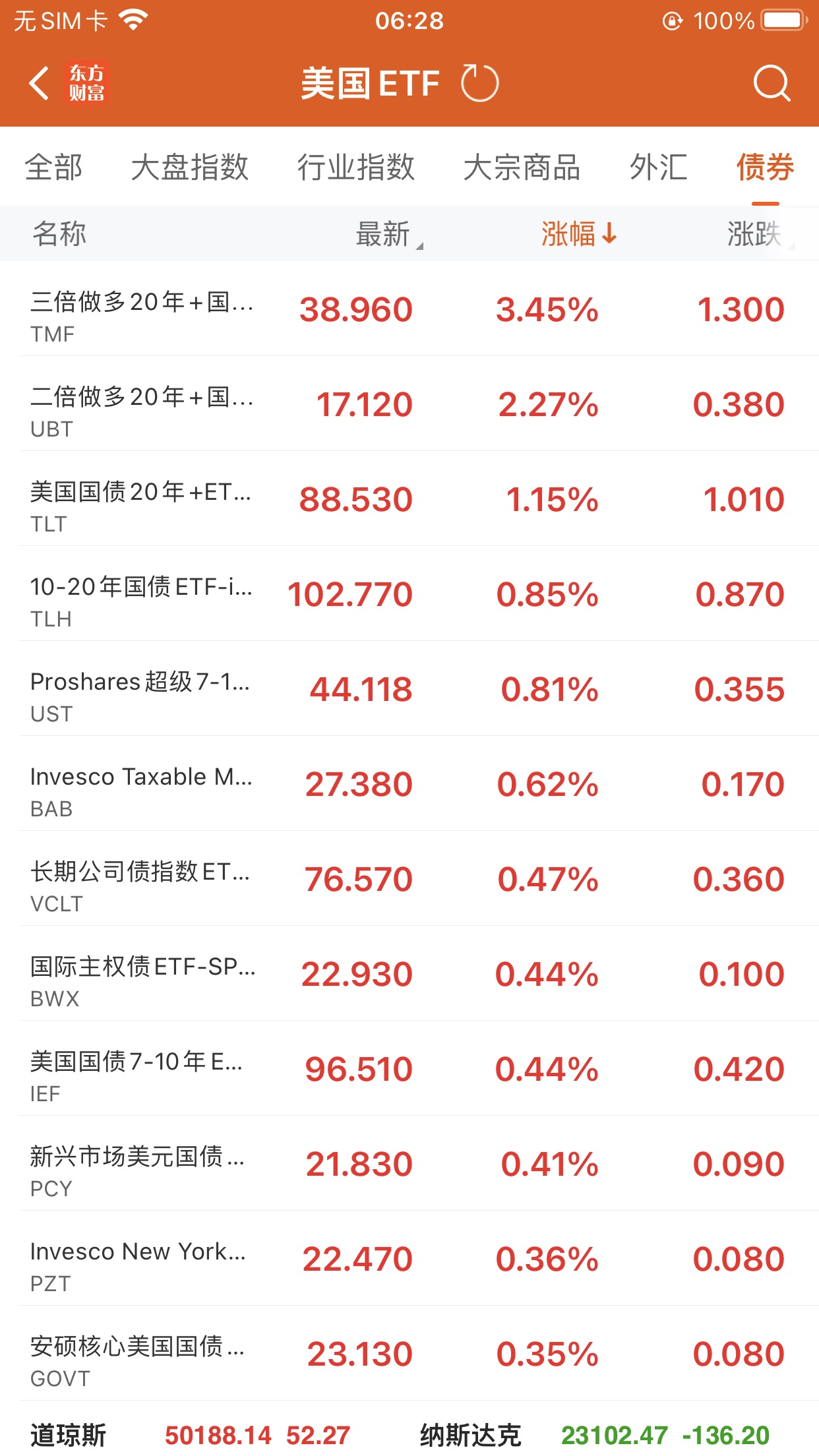 三倍做多20年期以上国债ETF-Direxion(TMF.US) :升 3.45%,成交额 2.57 亿美元